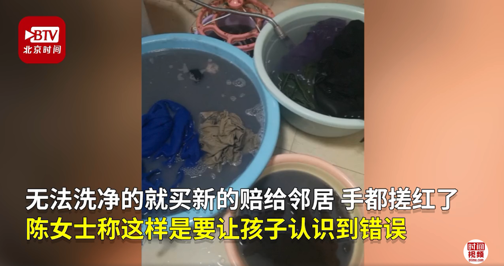 孩子因?yàn)樨澩妫谧约谊柵_(tái)上把一大瓶墨汁從樓上澆了下去,導(dǎo)致樓下住戶的衣服、樓的外墻、防盜網(wǎng)、玻璃和地下,統(tǒng)統(tǒng)染上了黑色的墨汁。