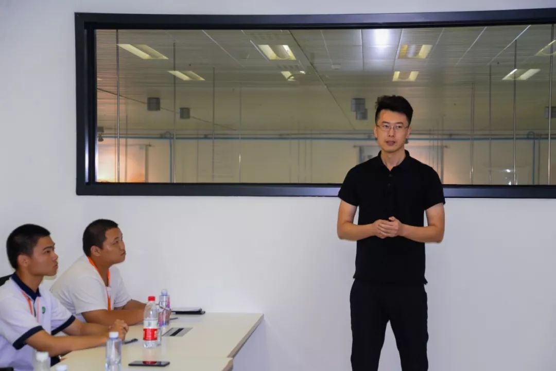 在佛山順德保時捷中心,行政人事經理羅麗、售后經理姜英、車間經理隋國峰為同學們進行了培訓。首先,同學們一一進行自我介紹,隨后通過羅經理的詳細介紹,同學們了解到佛山順德保時捷中心由中國美東汽車控股有限公司投資建設,提倡“以客為尊、團隊成長、追求卓越”的企業文化,采用公平透明的人才梯隊培養模式。