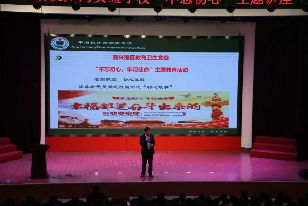 為深入開展:“不忘初心、牢記使命“主題教育,杭州灣實驗學校利用班會課組織七、八年級學生和學校教師一起聆聽了校招生辦顧主任講述的“初心故事。“顧主任從教育的初心使命說起,以《老而彌堅,初心依舊—退休老黨員重返校園講述“初心故事“》為題,結合自己的親身經歷,以從教四十年來學校教育的發展,學生層面的變化、教師能力的提高為主線,講授了一堂主題鮮明、內容深刻的專題黨課。