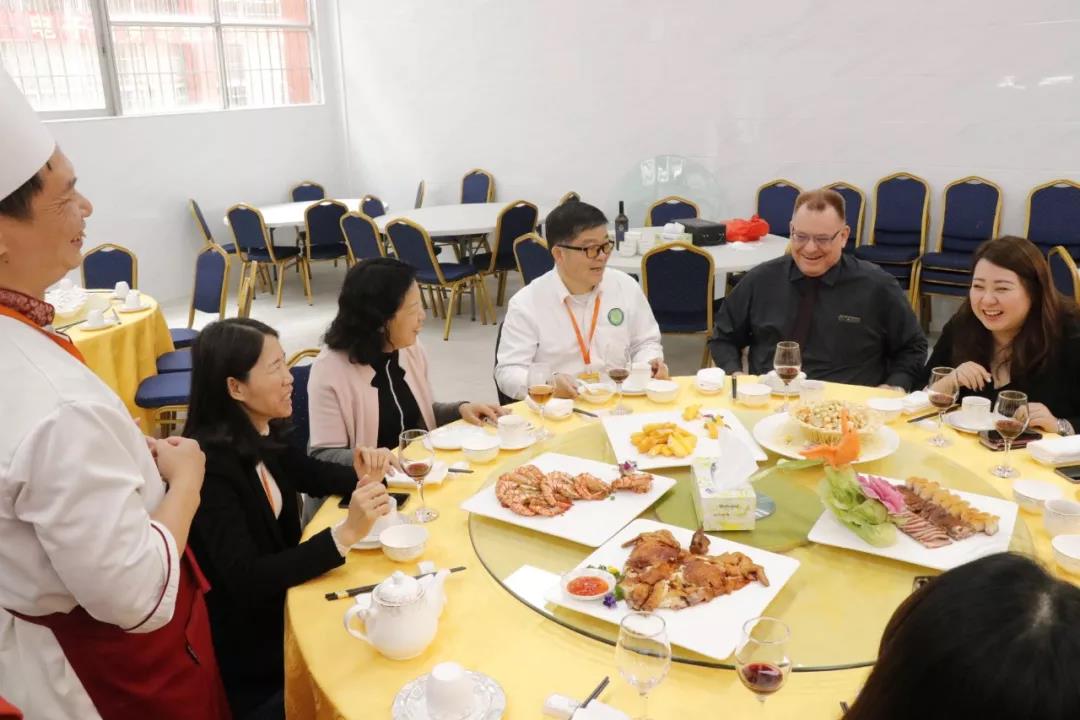 參觀過程中,來賓們對我校中餐烹調(diào)及面點制作課堂表現(xiàn)出強烈的興趣,Mr.Stuart表示,這樣的課堂氛圍非常好,學生以小組為單位,大家相互協(xié)作,凝結(jié)智慧,制作出的作品都是獨一無二的。