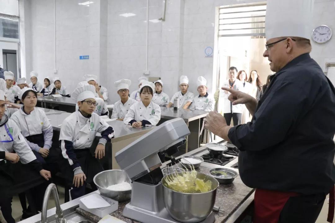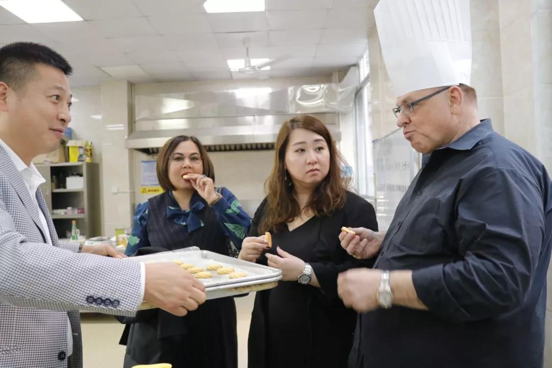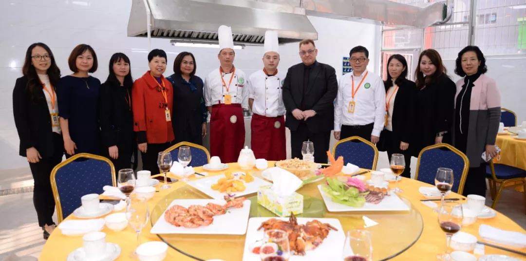 12日上午,包括澳大利亞政府貿(mào)易投資委員會商務官員周覓瓊、EHI校長Mr.Stuart、首席運營官Ms.Bubpa、亞洲區(qū)域市場經(jīng)理周敏怡、中國項目經(jīng)理歐陽云在內(nèi)的一行來賓便早早抵達我校,在我校領導及老師的陪同下參觀了烹飪專業(yè)各大實訓室。