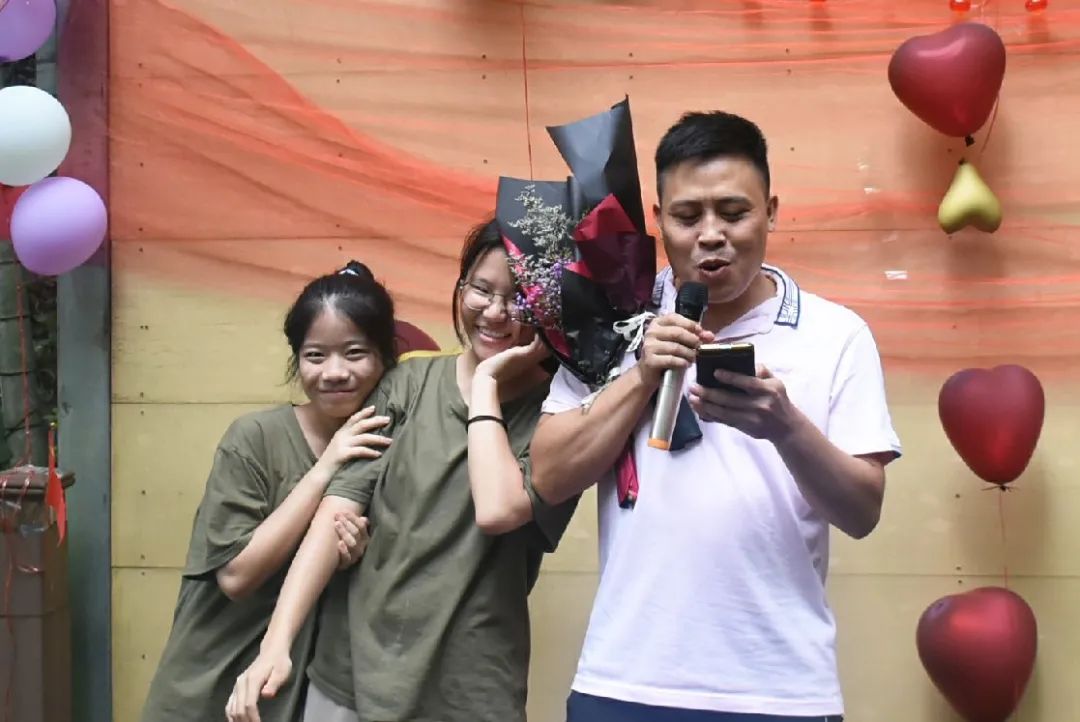 吃飽喝足便是節(jié)目表演環(huán)節(jié),老師的《日不落》活躍氣氛,現(xiàn)場成為打歌舞臺,輕快酷炫的rap讓大家飽享耳福,搞笑有趣的廣西版《有何不可》讓大家捧腹大笑,熟悉的歌謠使得在底下的觀眾情不自禁地跟唱起來,小伙伴們組成一個個小團隊,在舞臺散發(fā)著獨具特色的光芒,歌聲夾著尖叫聲,打call聲響徹丫山,送花合影讓我們更親密了,每個人的臉上都洋溢著笑容,負責接送我們的劉老師最后也按捺不住了,唱起了動聽的經(jīng)典歌曲《濤聲依舊》和《橋邊姑娘》。