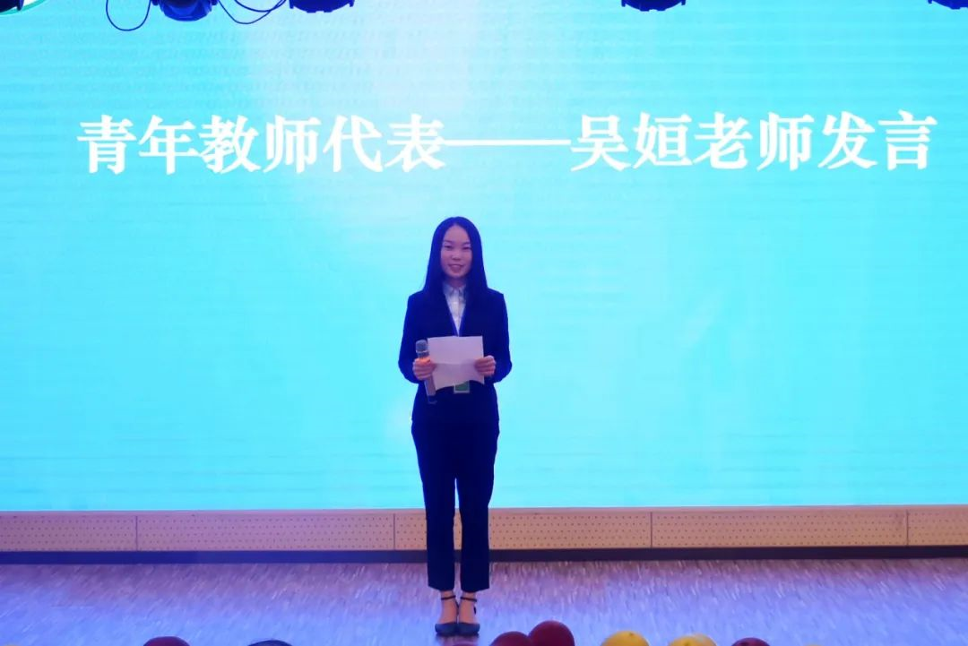 青年教師代表吳姮老師在會上發言,她引用陶行知先生的話:“在教師的手里操著幼年人的命運,便操著民族和人類的命運。” 學校師徒結對活動的適時舉行,猶如雪中送炭,為青年教師開啟了一扇通往成功的大門。作為徒弟的他們,一定會懷著一顆感恩的心,不辜負師父的期望與厚愛,也不辜負學校的要求和培養。感謝學校提供了學習成長的基地,師徒結對這一條無形的紐帶聯結了雙方,為大家增加了交流溝通和相互學習的平臺。相信一定能在衡實這片沃土上茁壯成長,教育之路越走越寬,越走越穩。