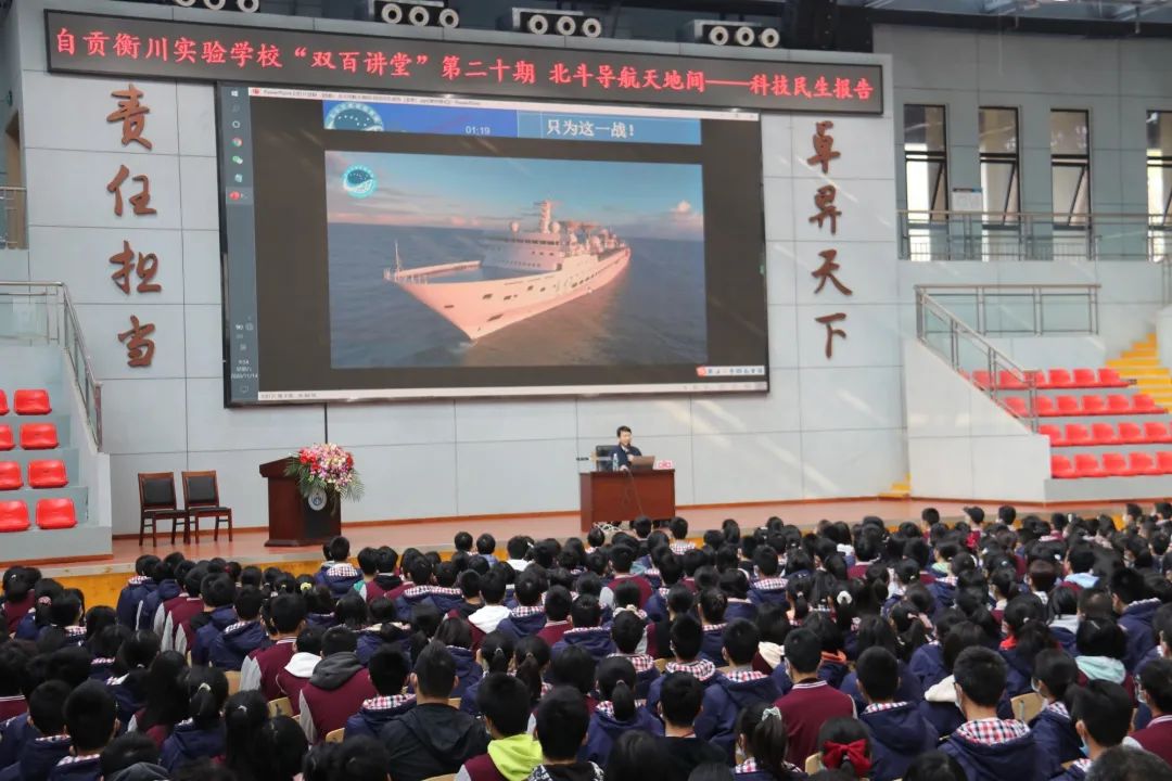 11月14日,中國(guó)航天科技集團(tuán)中國(guó)運(yùn)載火箭技術(shù)研究院總體設(shè)計(jì)部火箭設(shè)計(jì)師、中國(guó)科學(xué)院國(guó)家空間科學(xué)中心博士錢航走進(jìn)衡川“雙百講堂”,與莘莘學(xué)子共話科技,揭開北斗衛(wèi)星導(dǎo)航系統(tǒng)的神秘面紗!我校小學(xué)、初中、高中1500余名師生參與了本次活動(dòng)。
