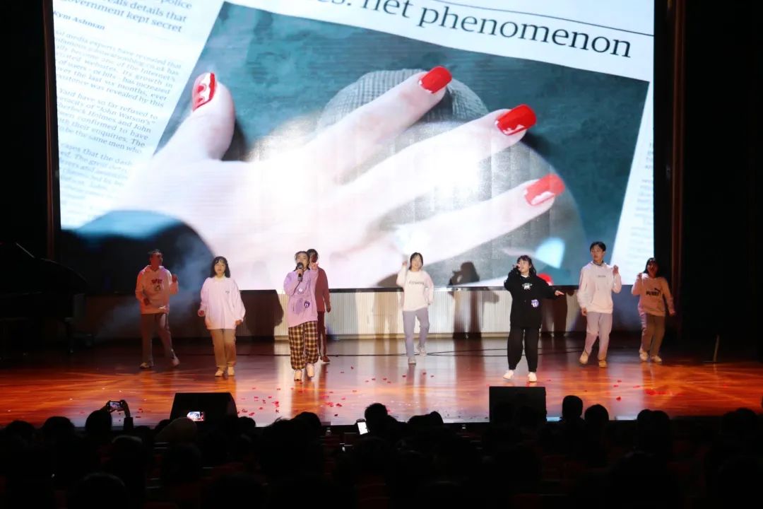 他們積極創(chuàng)新表現(xiàn)形式,豐富多彩的節(jié)目表演讓觀眾享受視覺和聽覺的雙重盛宴——搖滾熱血的勵志歌曲《closer》嗨翻全場,尖叫聲經(jīng)久不絕;古風戲曲《赤伶》二胡,古箏作為伴奏情景交融,一場生死別離讓觀眾身臨其境;熱血紅歌《烈火戰(zhàn)馬》和流行rap的結(jié)合歌唱出祖國大好河山,觀眾們也熱血沸騰,精神倍增;經(jīng)典歌曲《紅玫瑰》將歌曲和舞蹈相結(jié)合,悠揚的歌聲和動作協(xié)調(diào)的二人舞,讓觀眾意猶未盡。