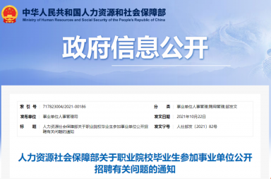 近日,人力資源社會保障部印發《關于職業院校畢業生參加事業單位公開招聘有關問題的通知》(以下...