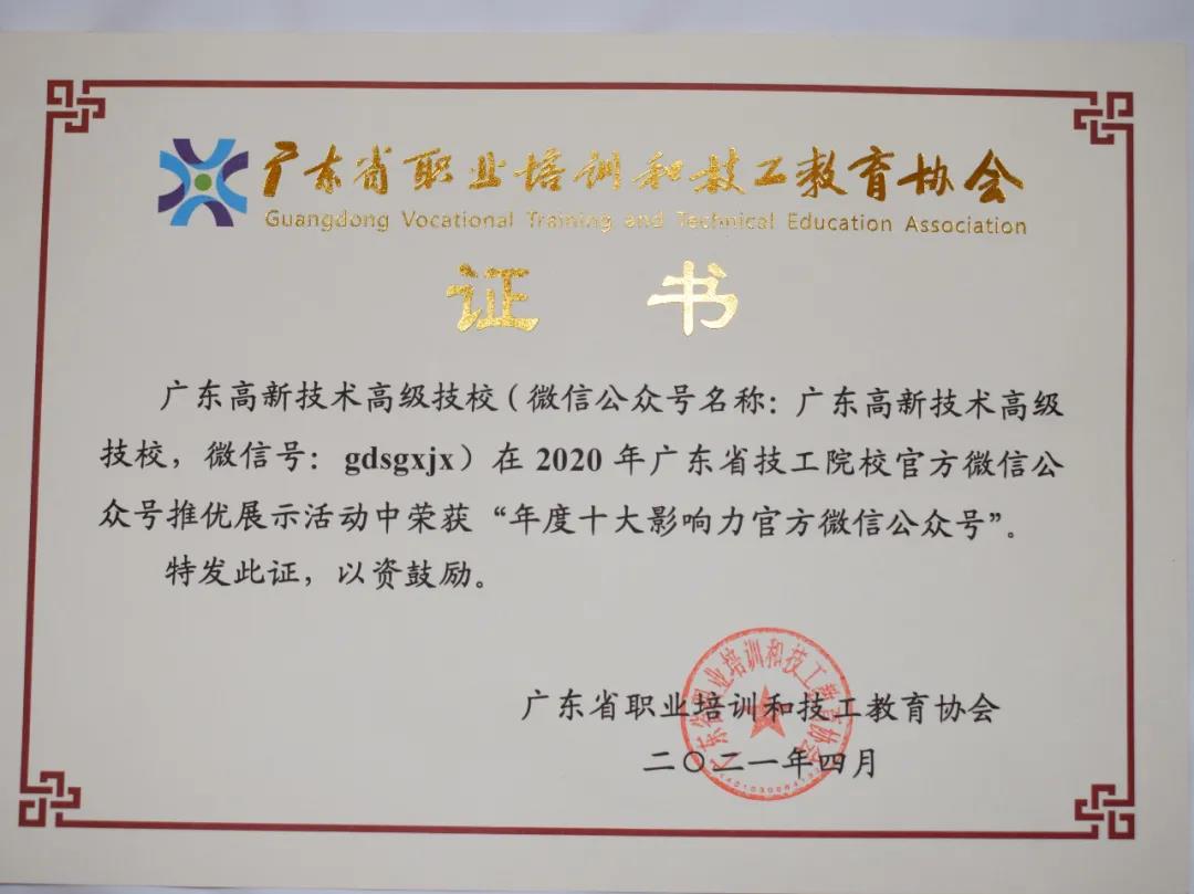 ★廣東省高新技術高級技工學校官方微信(微信號:gdgxjx)被評為“年度十大影響力官方微信公眾號”...